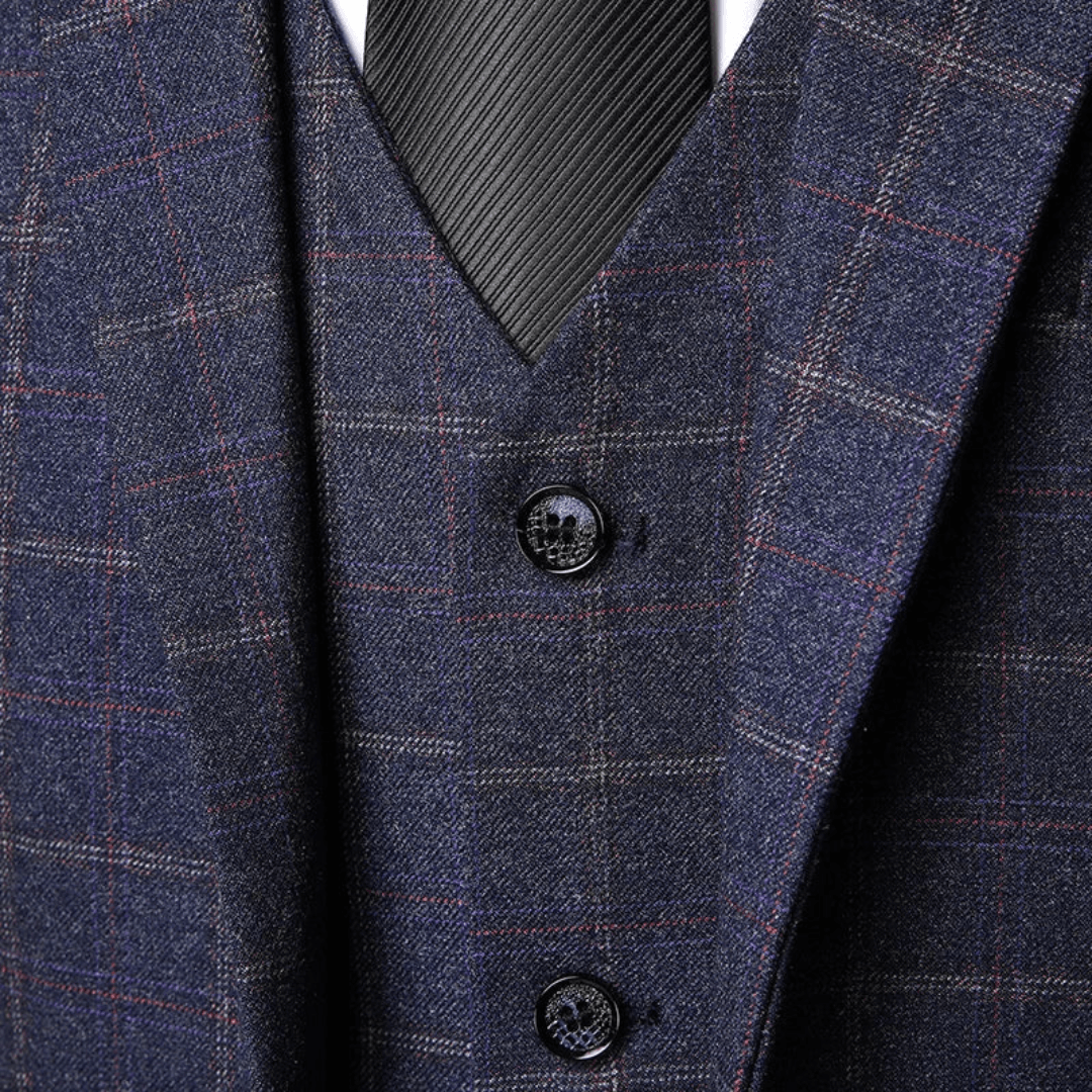 3-piece Suit for Men with Vest and Blazer – Check Pattern