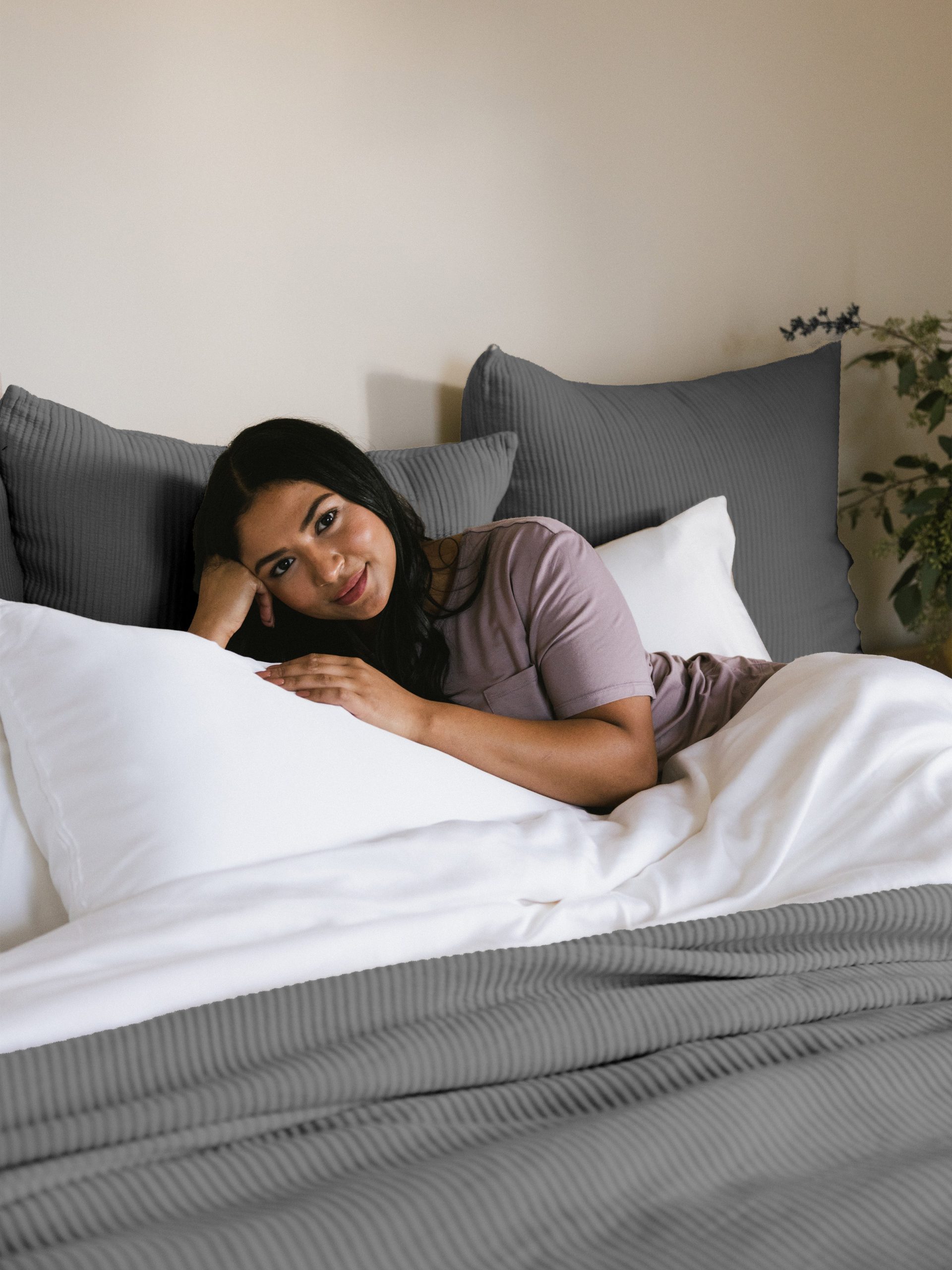 Elevate your bedroom with our Bamboo Coverlet ?C a modern blend of style and comfort. This oversized coverlet is crafted from 100% Viscose from Bamboo and offers a cooling touch and timeless elegance. With vertical textured stripes and a soft garment-washed feel, it’s perfect for folding or layering, making it a versatile and essential addition to your bedding.