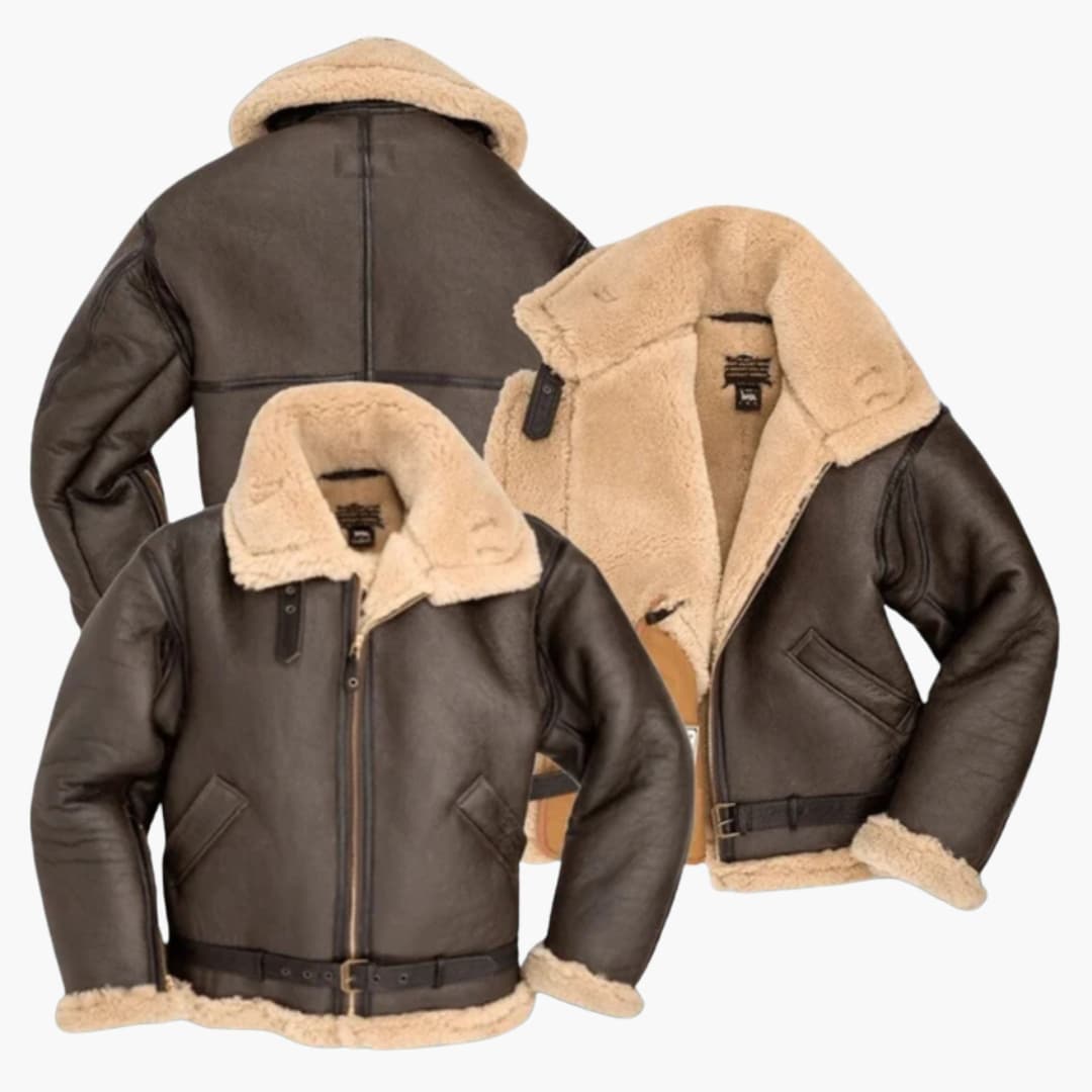 Aviator-Style Men’s Jacket with Wide Collar and Zippered Front.