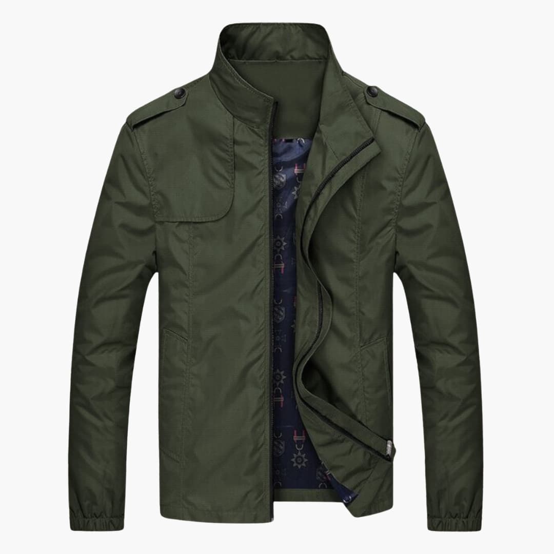 Men’s Jacket with Zip Front and Standing Collar.