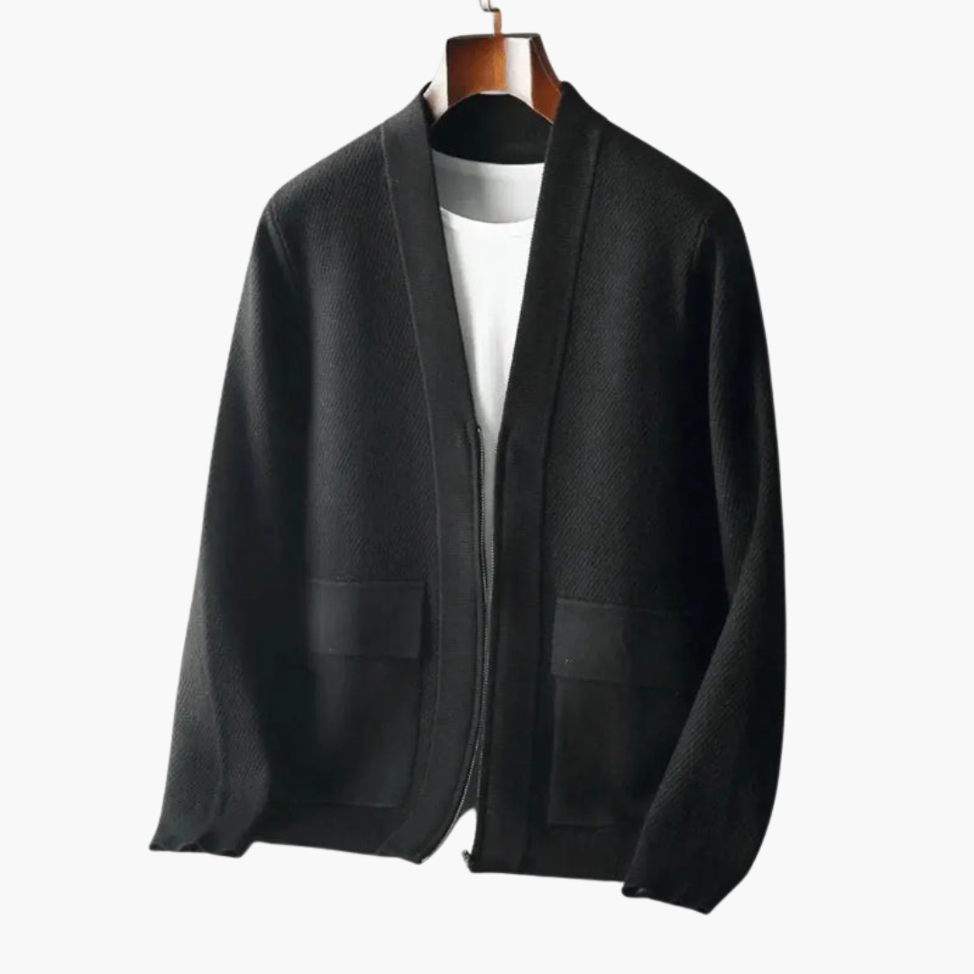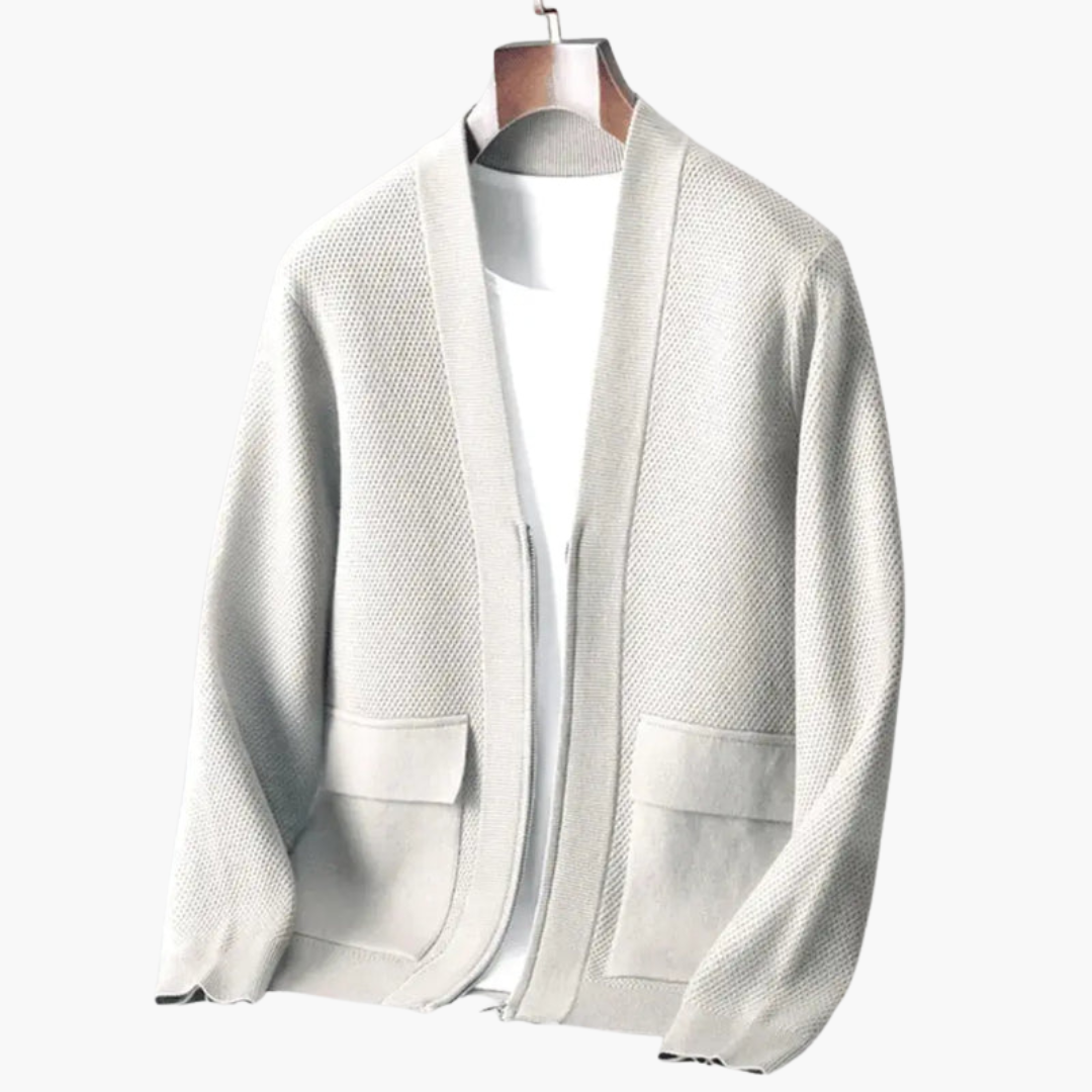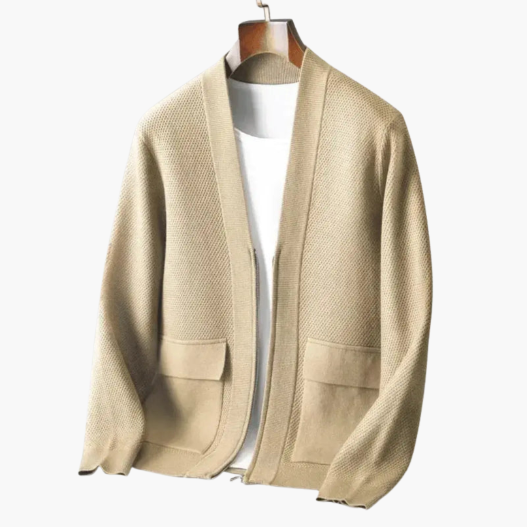 Men’s Open Front Cardigan with Long Sleeves and Patch Pockets
