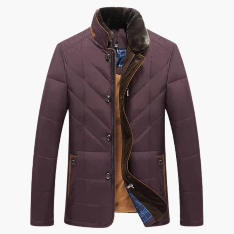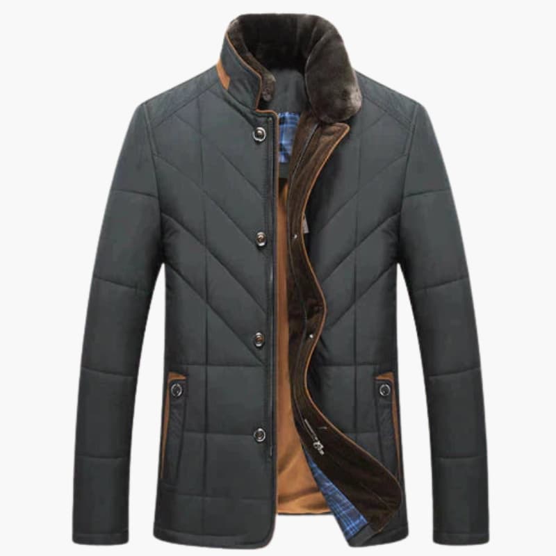 Men’s Padded Jacket with Stand Collar and Dual Closure