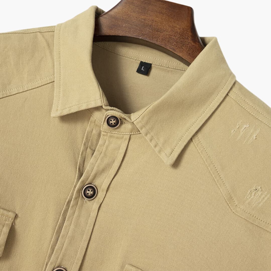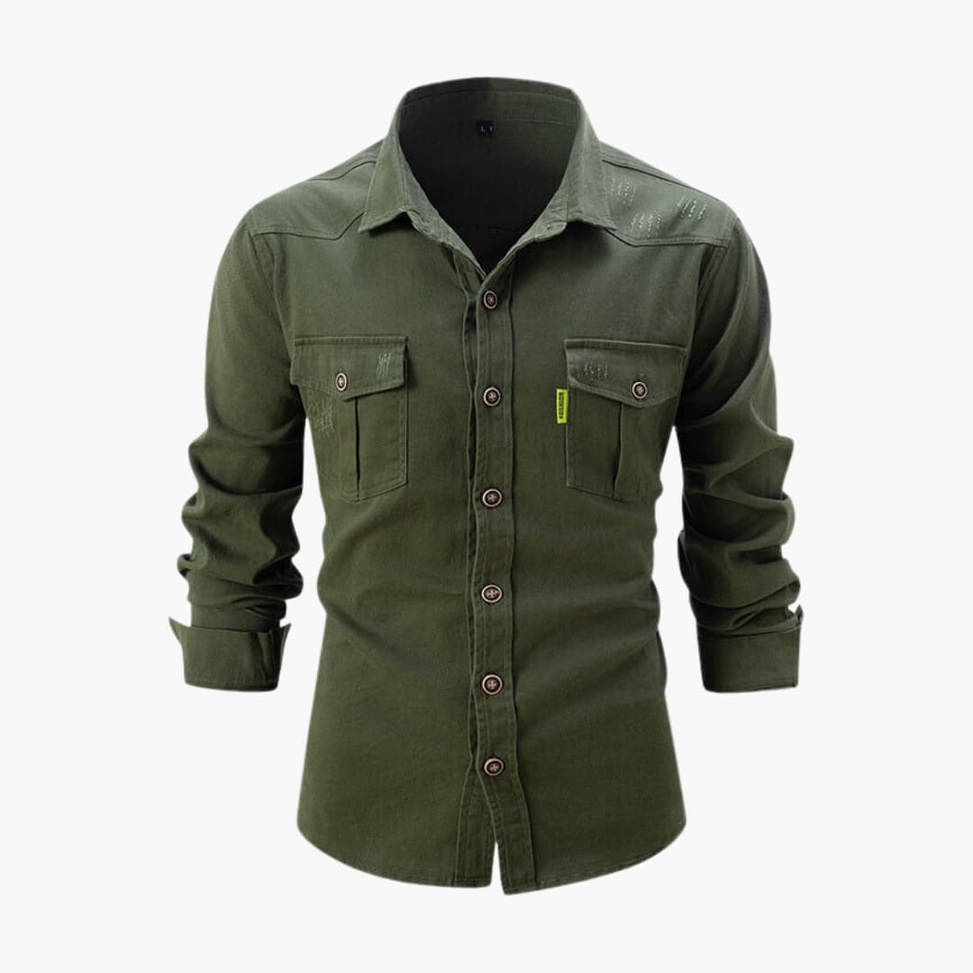 • Pockets: Two chest pockets with flaps and button closures for secure storage.