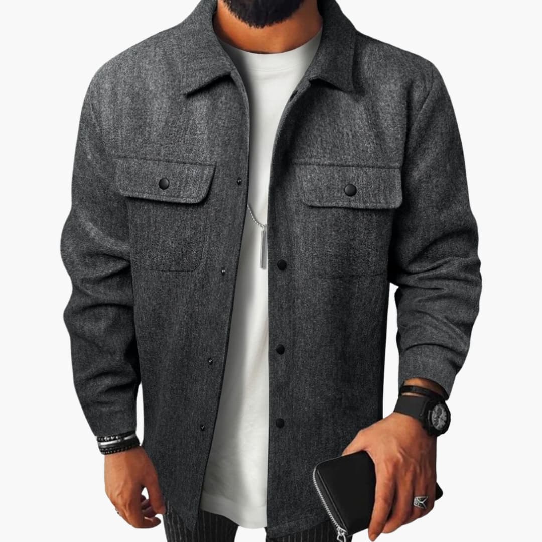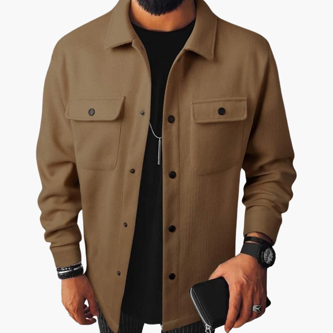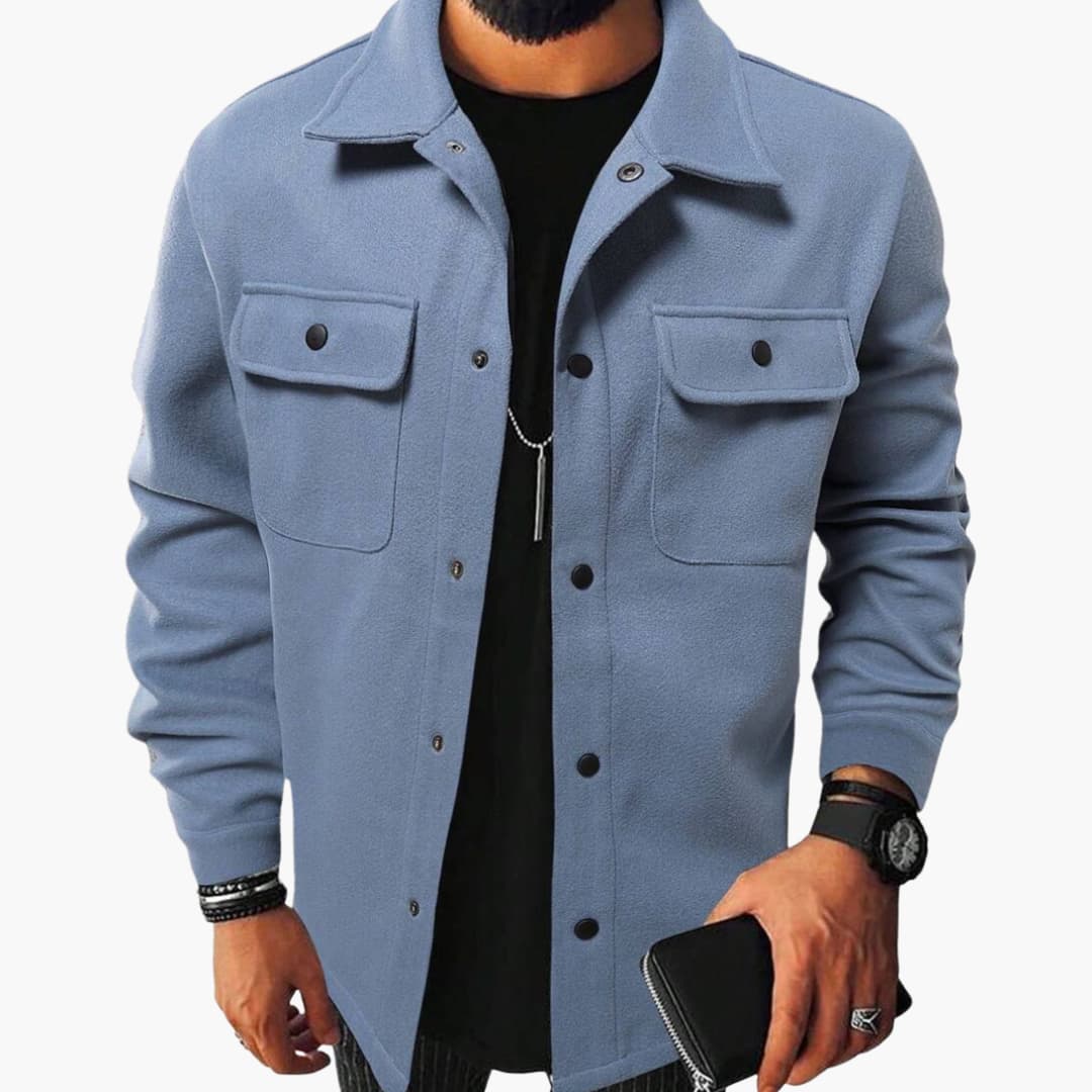 Men’s shirt with button placket, chest pockets, and long sleeves