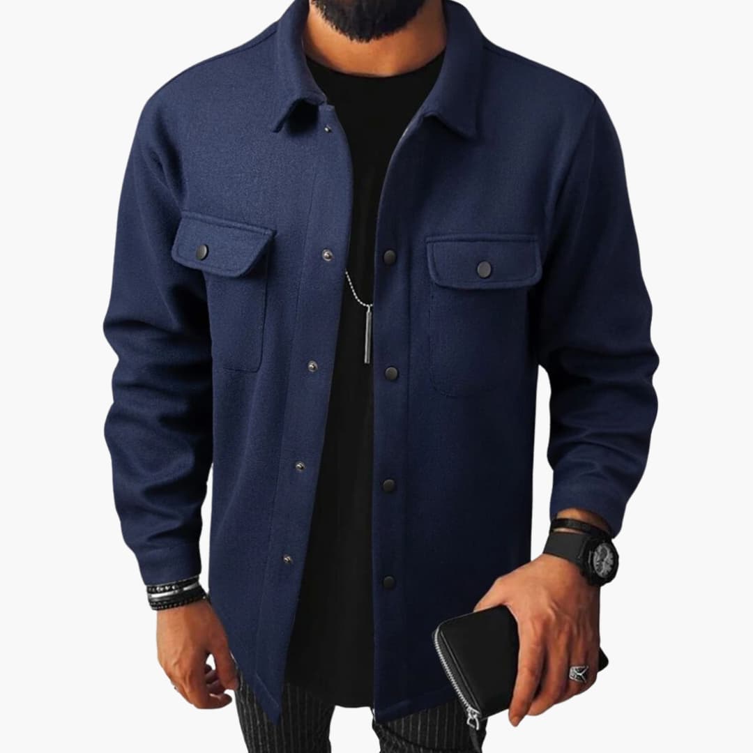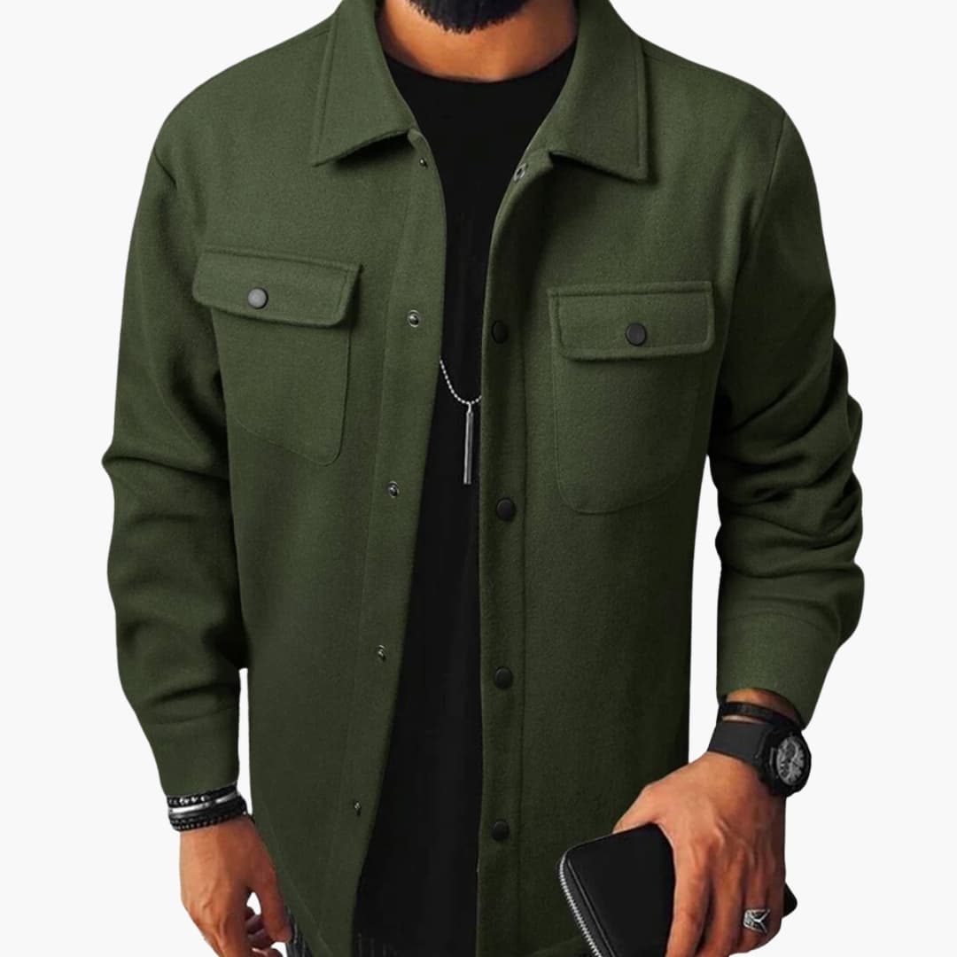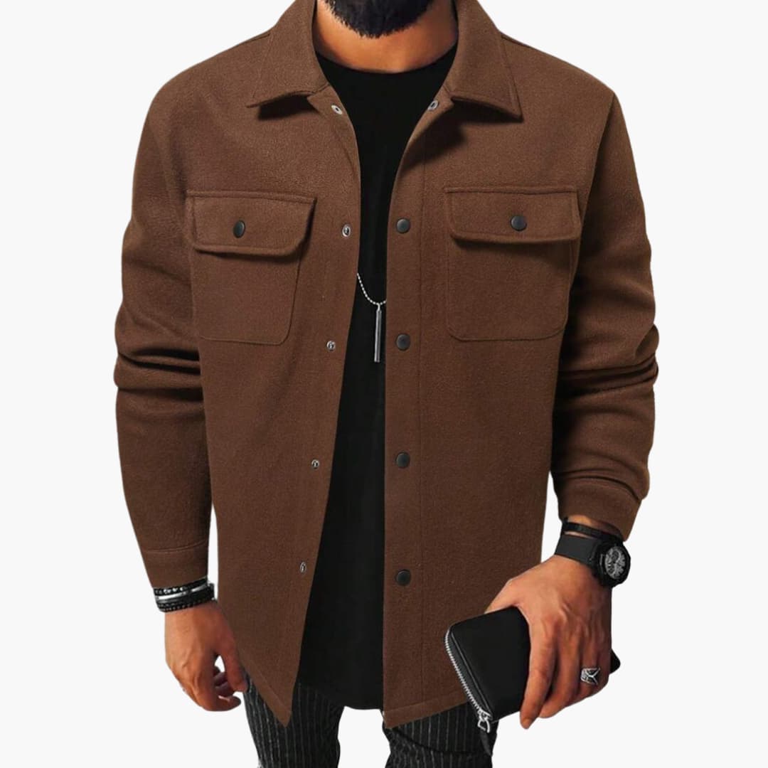 Men’s shirt with button placket, chest pockets, and long sleeves