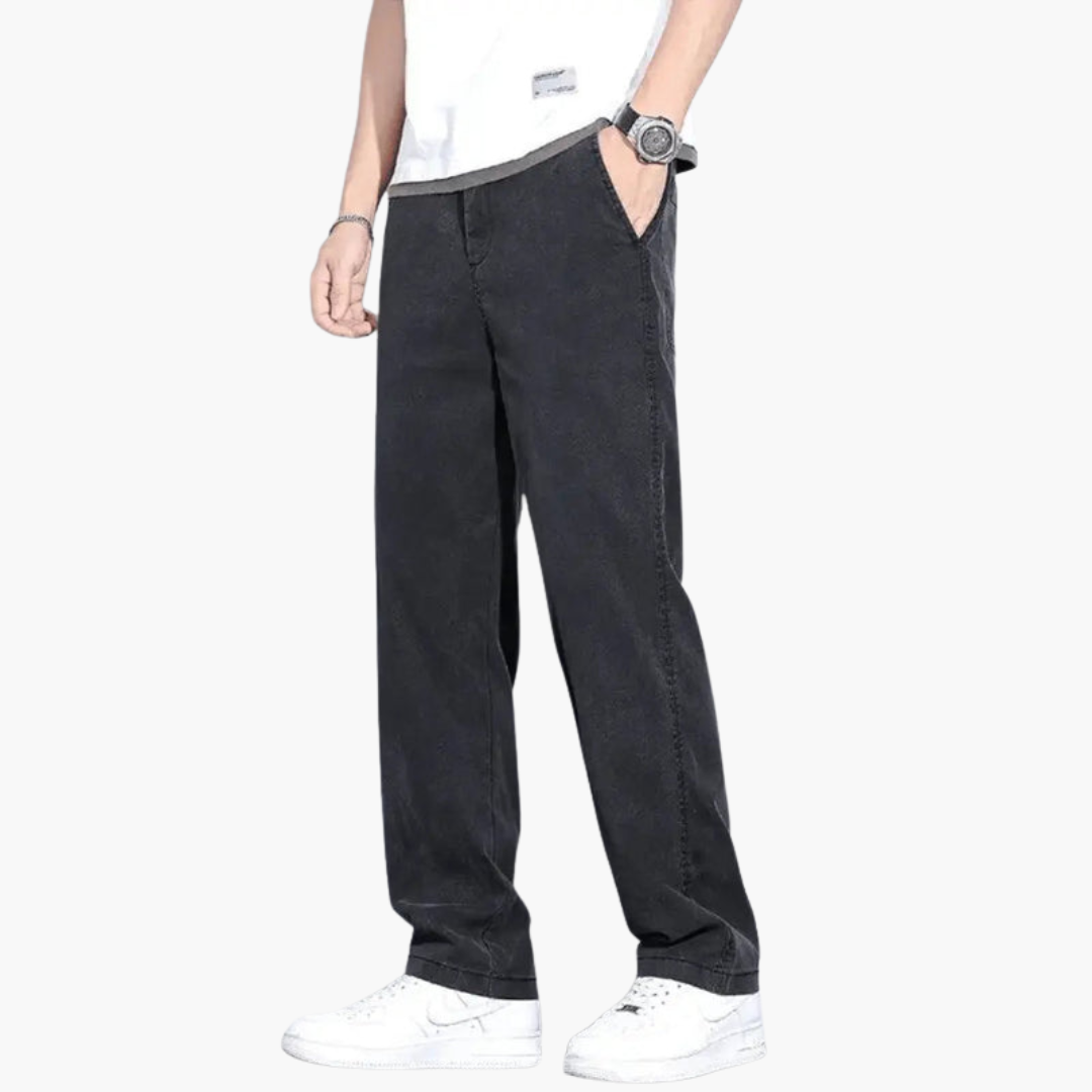 Men’s Straight Jeans with Elastic Waistband and Front Pockets