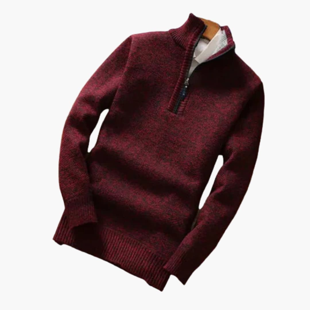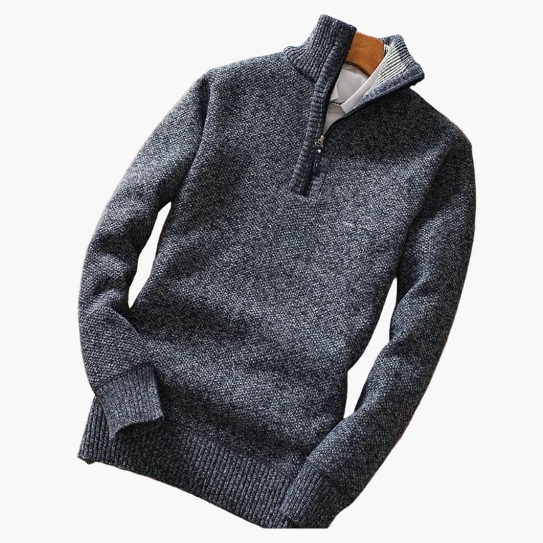 Men’s Knitted Sweater with Half Zip, Stand-Up Collar, and Textured Pattern