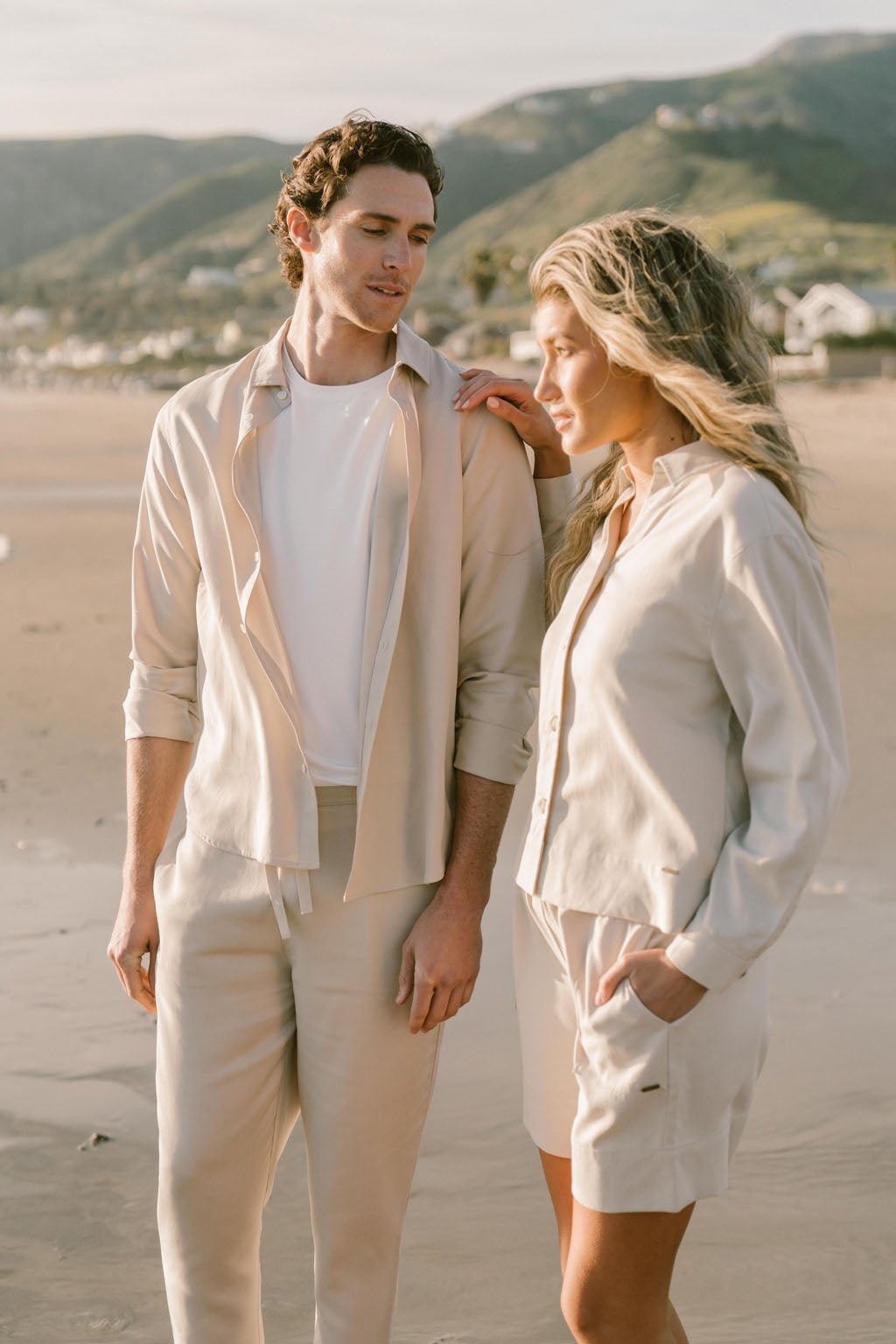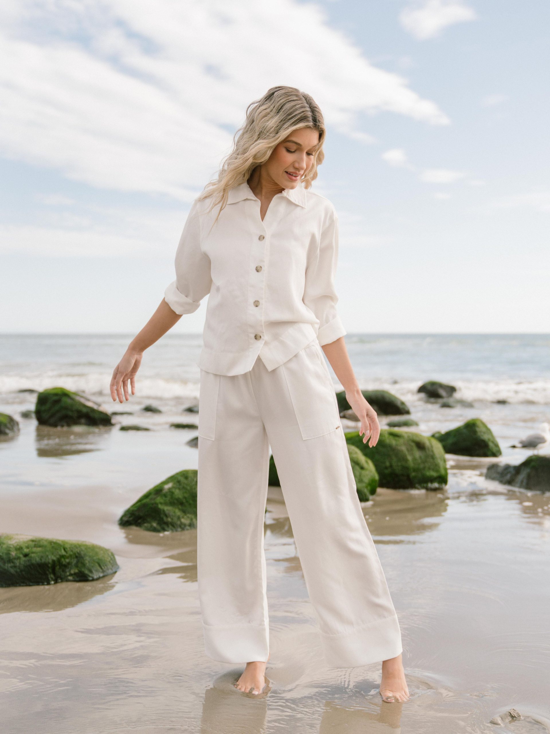 Relaxed yet elegant, our Long Sleeve Button Down is the perfect addition to your capsule wardrobe. Made from our unique blend of tencel and linen, our button down is naturally breathable and soft, perfect for year-round styling. Wear it tucked in to our Cozy Earth Coastal Comfort pant or untucked for a free-moving, lived-in silhouette.