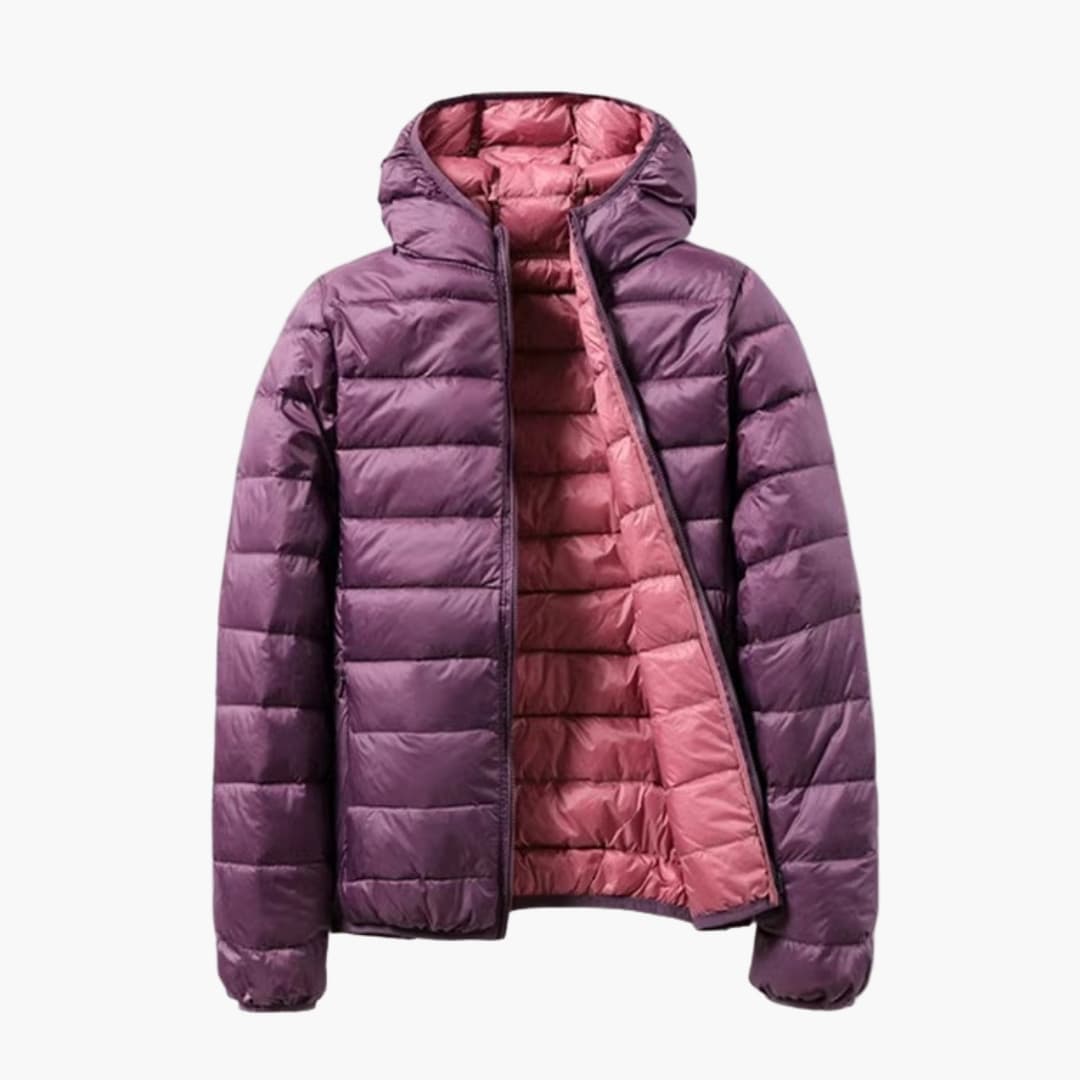 Women’s Reversible Jacket with Hood and Zipper Closure.