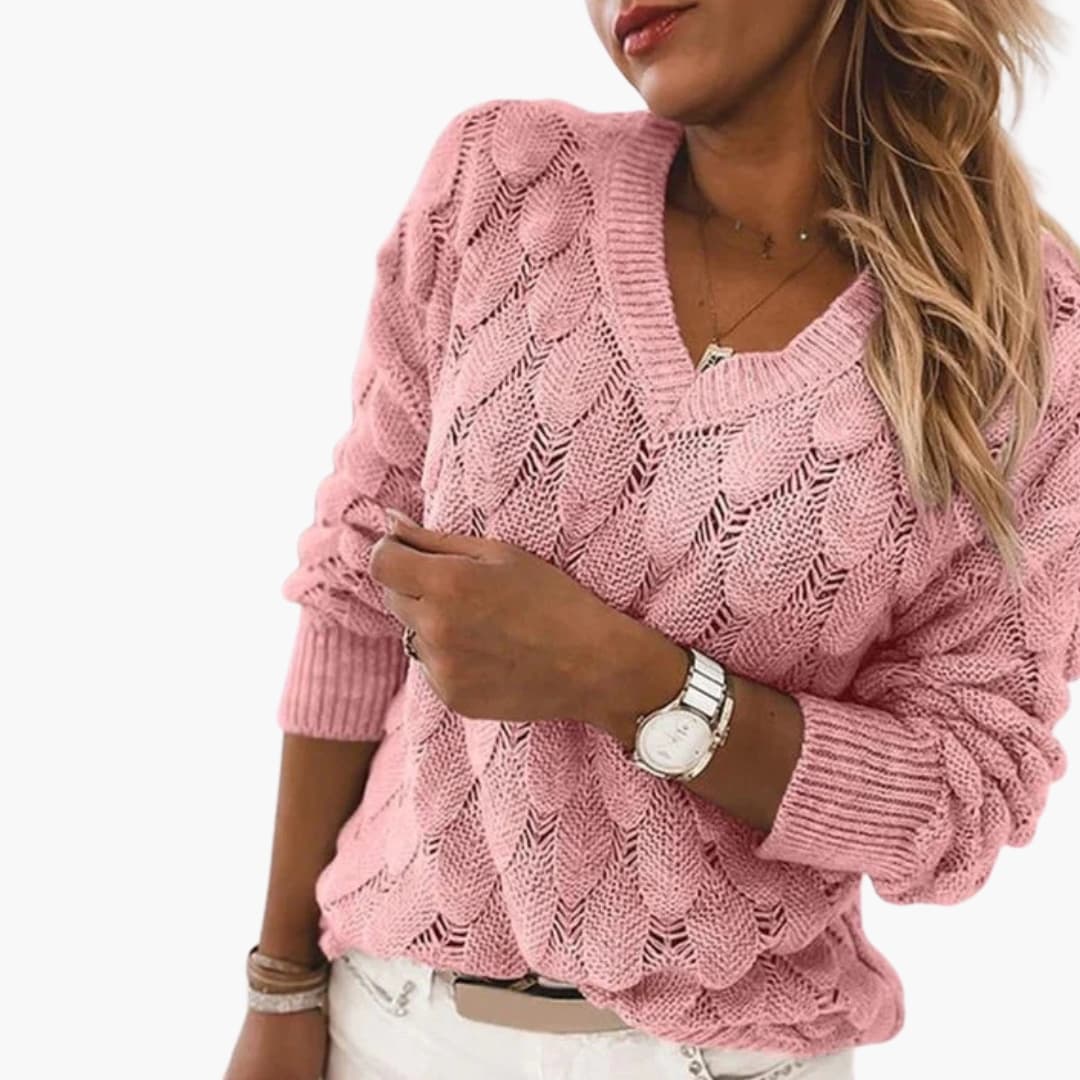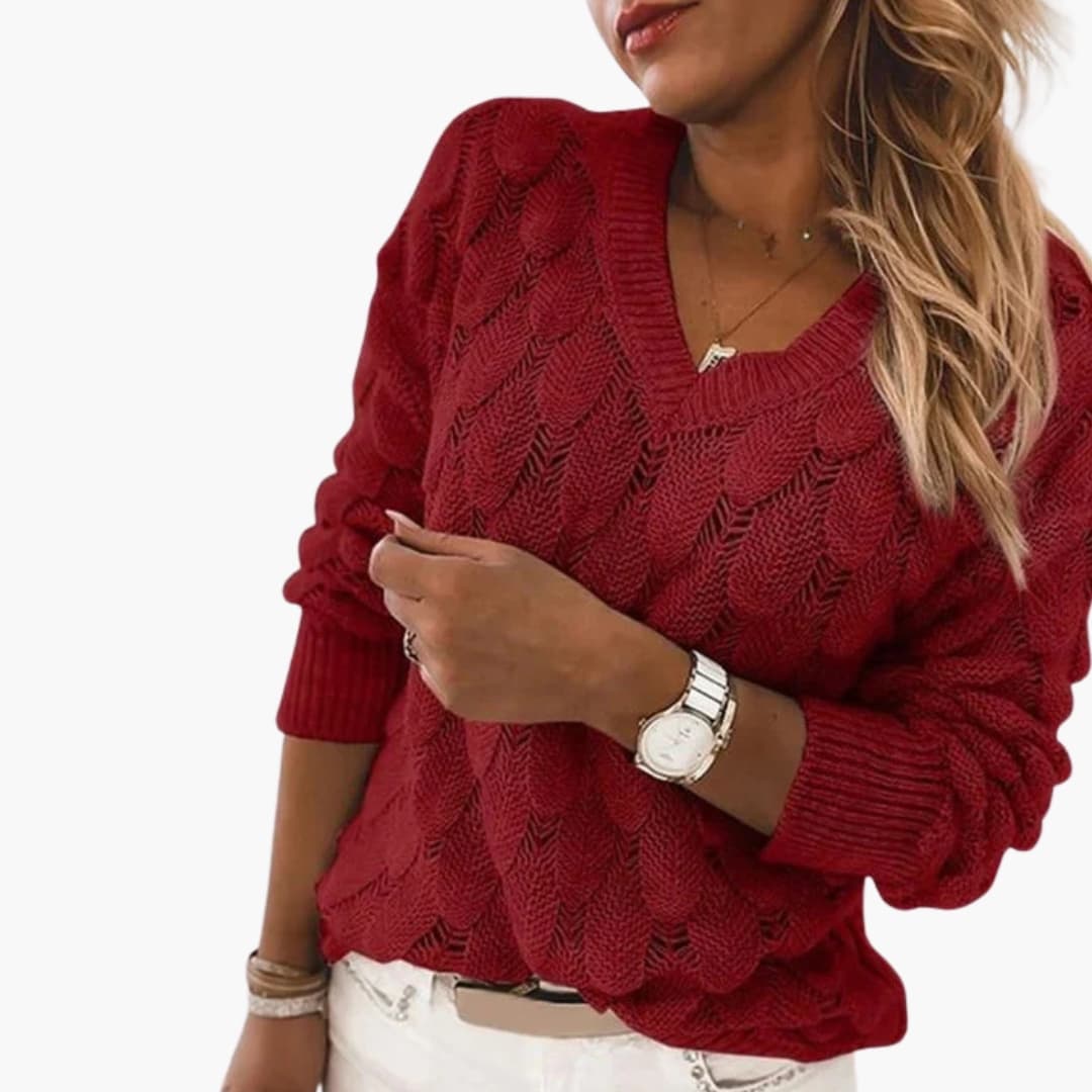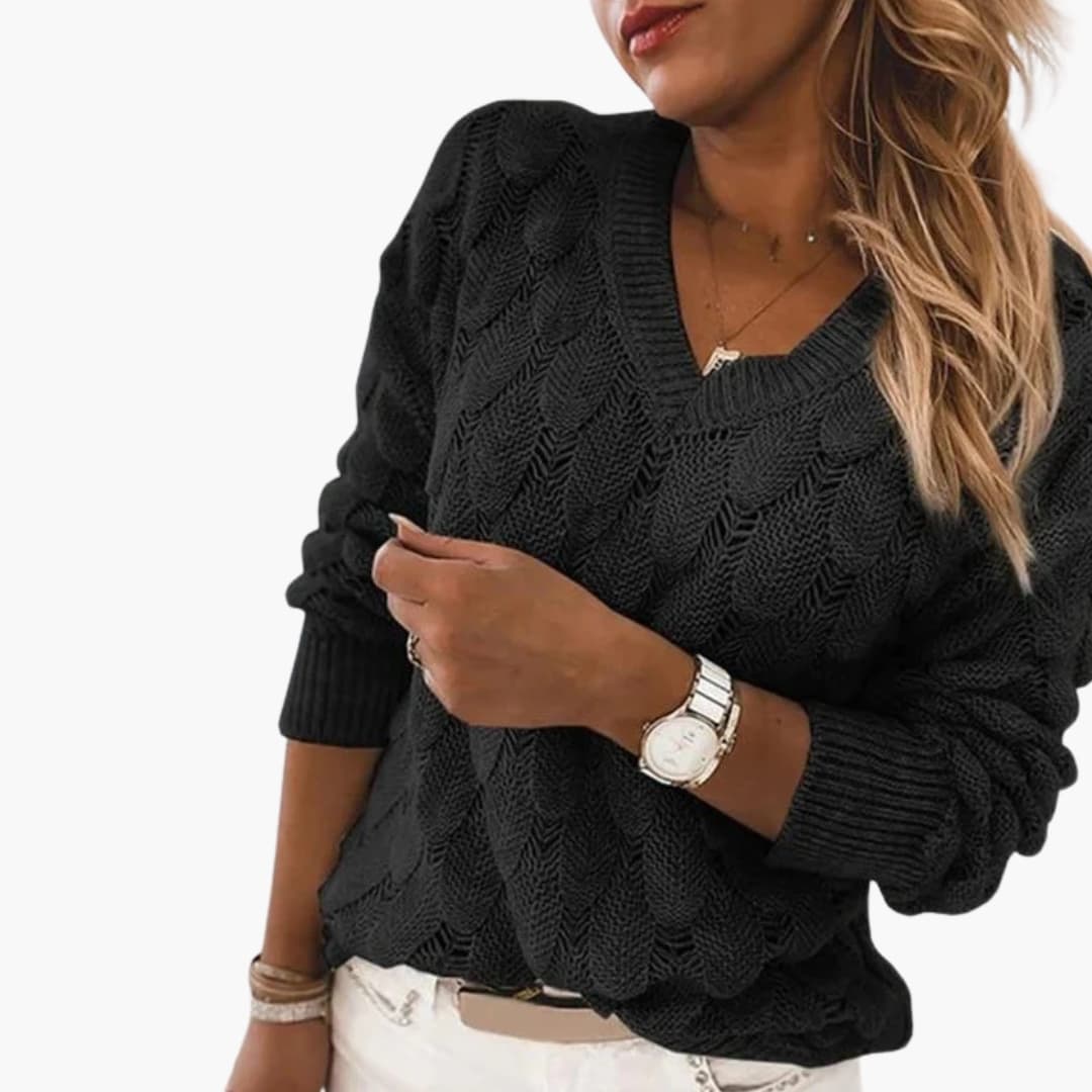 Women’s Knitted Sweater with V-Neck and Ribbed Hem