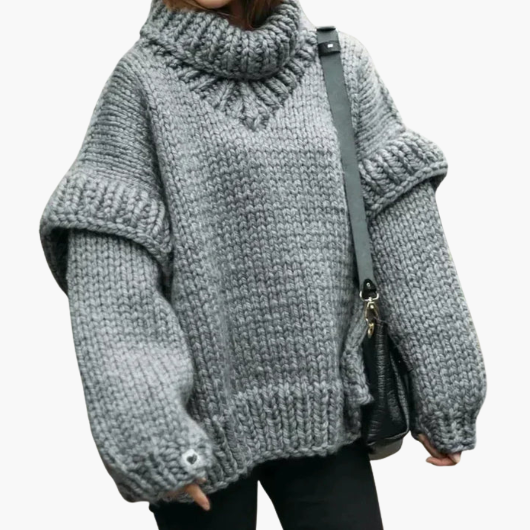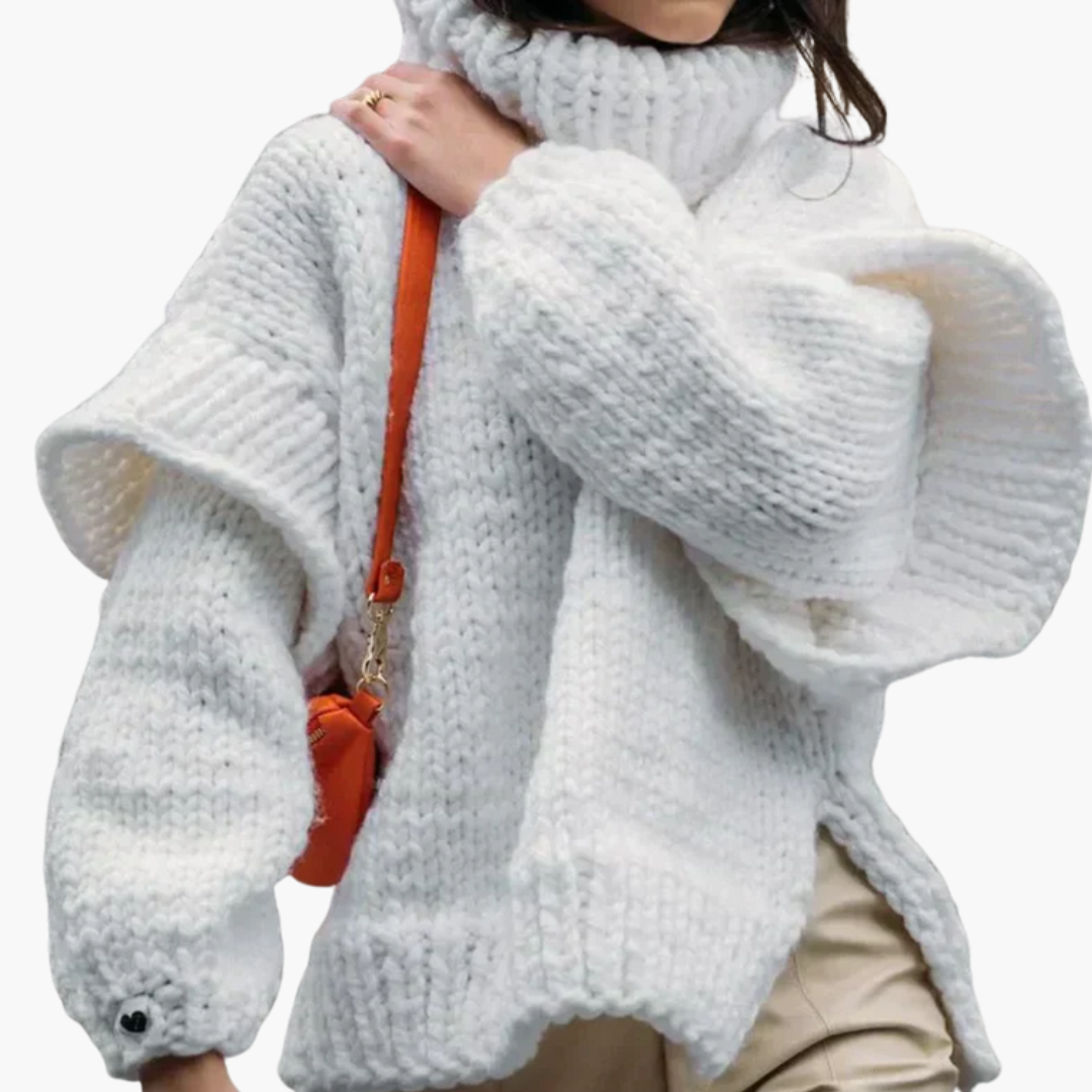 Women’s oversized ribbed turtleneck sweater with wide long sleeves