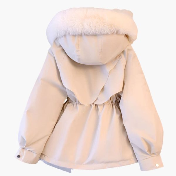 This women’s parka jacket features a lined hood, a full button closure, and two front pockets with flaps and cord details. The long sleeves are equipped with sewn cuffs, and the straight hem creates a classic shape. The jacket has an inner lining and is available in various solid colors.