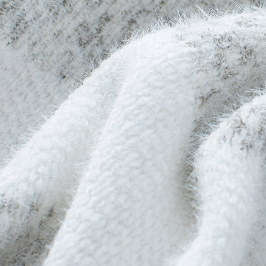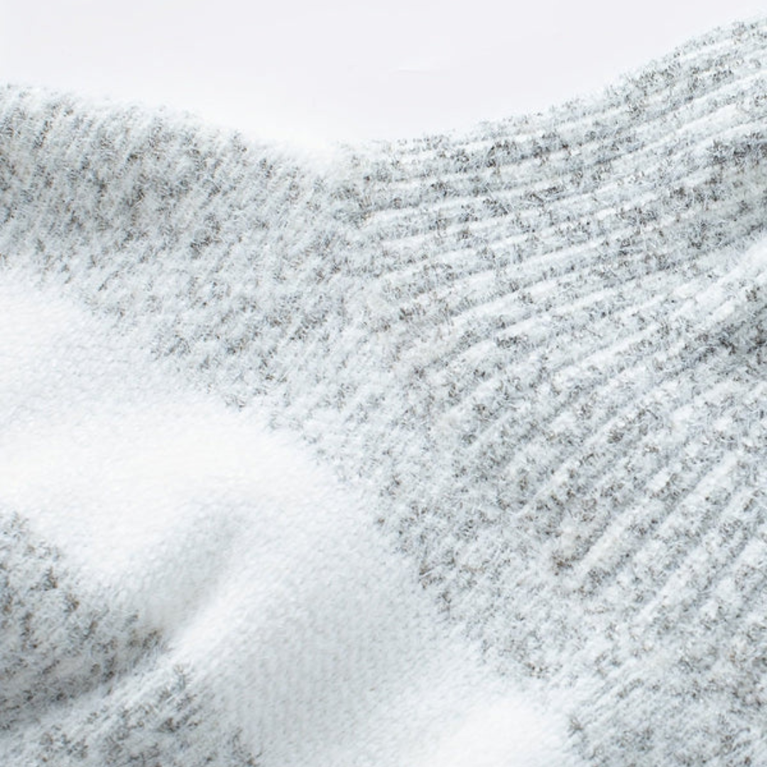 This women’s sweater features a high turtleneck and long sleeves with ribbed cuffs. The surface shows a horizontal striped knit pattern, and the hemline includes a ribbed detail for a neat finish. Its relaxed shape allows layering for cooler days and offers versatile styling options.
