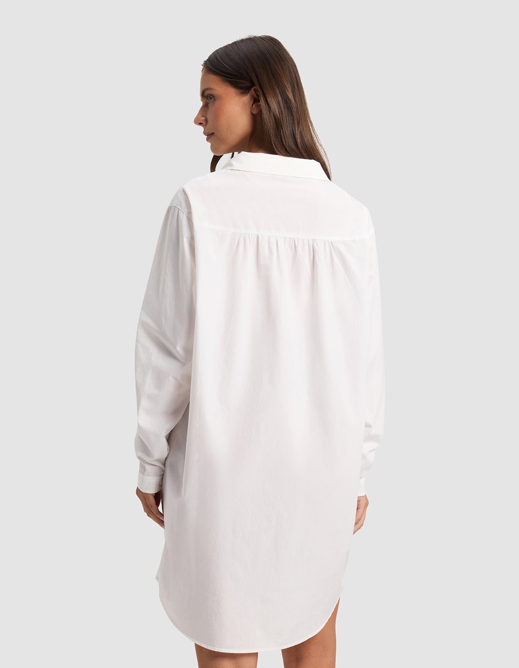Who says bedtime can??t be stylish? The Sutton Sleep Dress blends comfort with understated elegance. Its relaxed, button-down silhouette is elevated with feminine touches like a Peter Pan collar, subtle back yoke gathering, and single-button sleeve cuffs. Made from 100% lightweight cotton poplin and sandwashed for a lived-in feel, this dress is ideal for unwinding in effortless style.