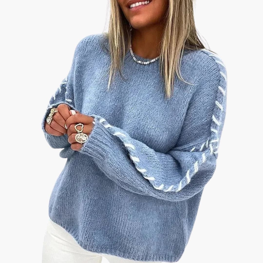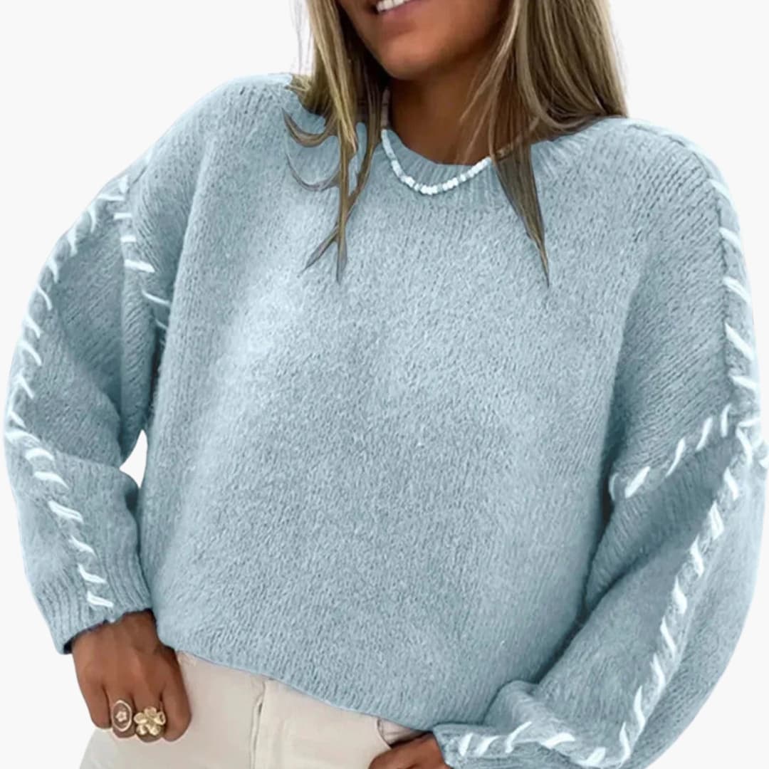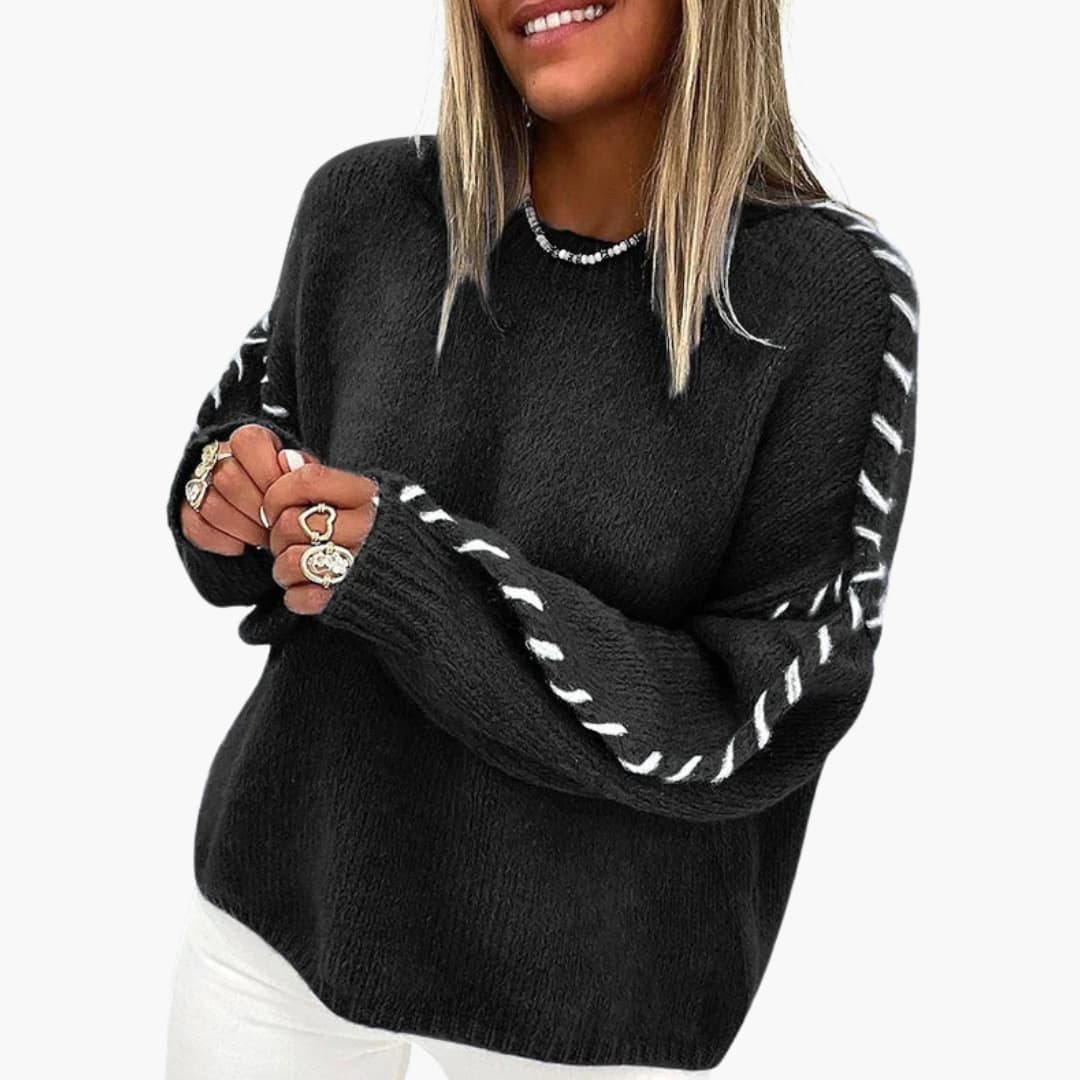 Women’s Knit Sweater with Round Neck and Contrast Seams