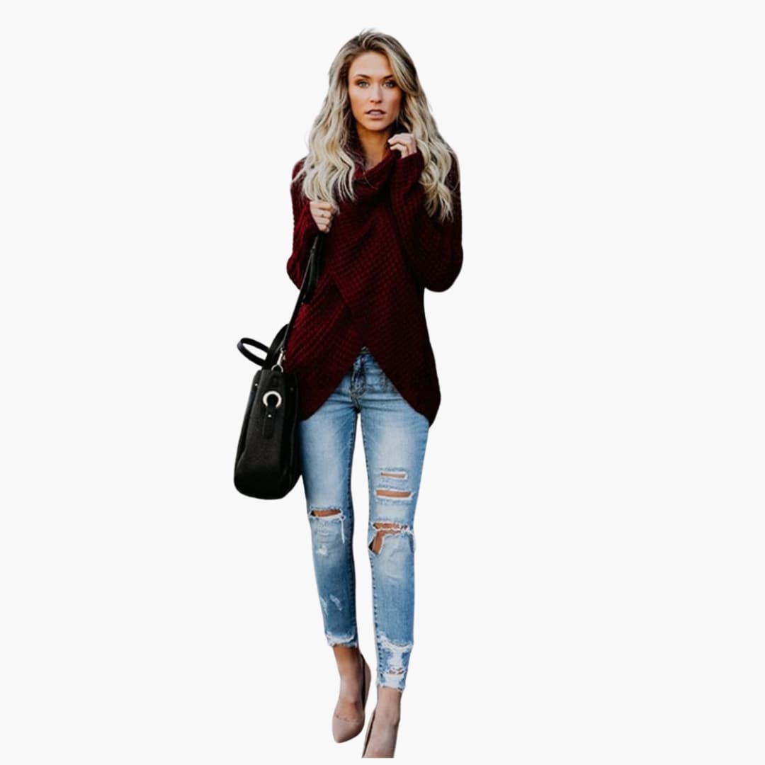 Women’s Knit Sweater with Shawl Collar and Wrap Look