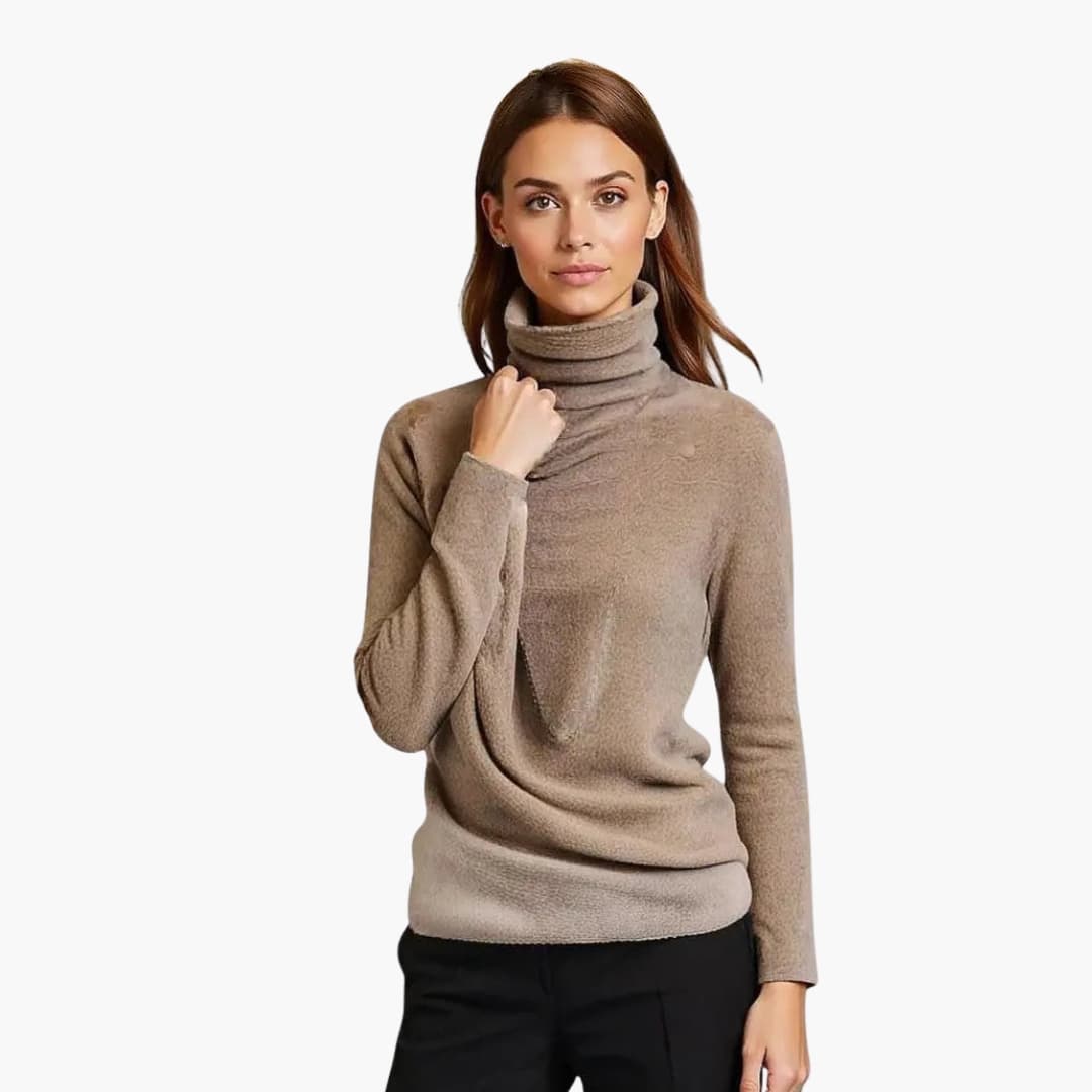 Women’s Turtleneck Sweater with Ribbed Neck and Long Sleeves