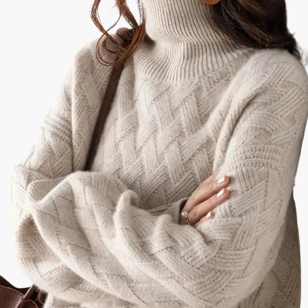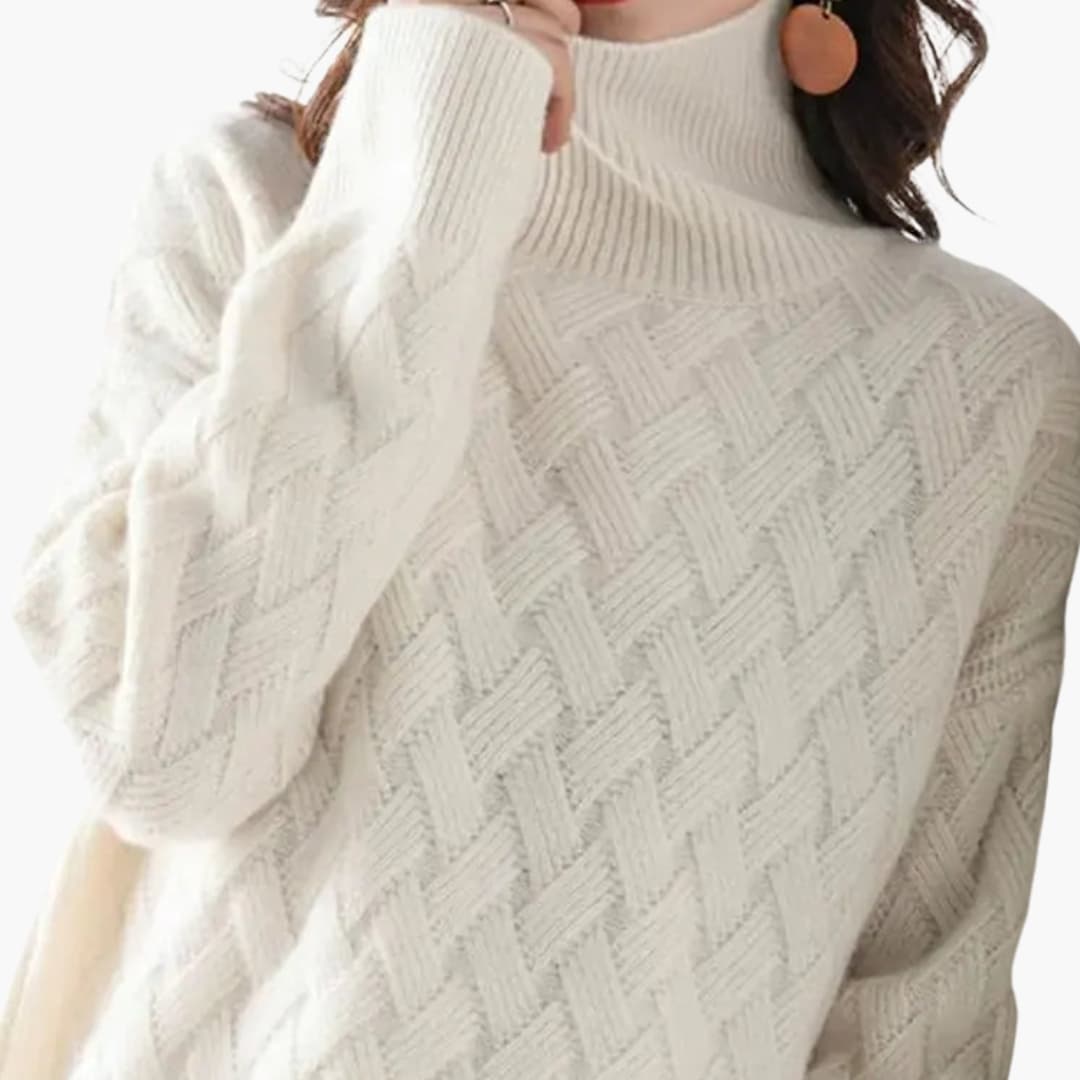 Women’s Turtleneck Sweater with Woven Knit Texture