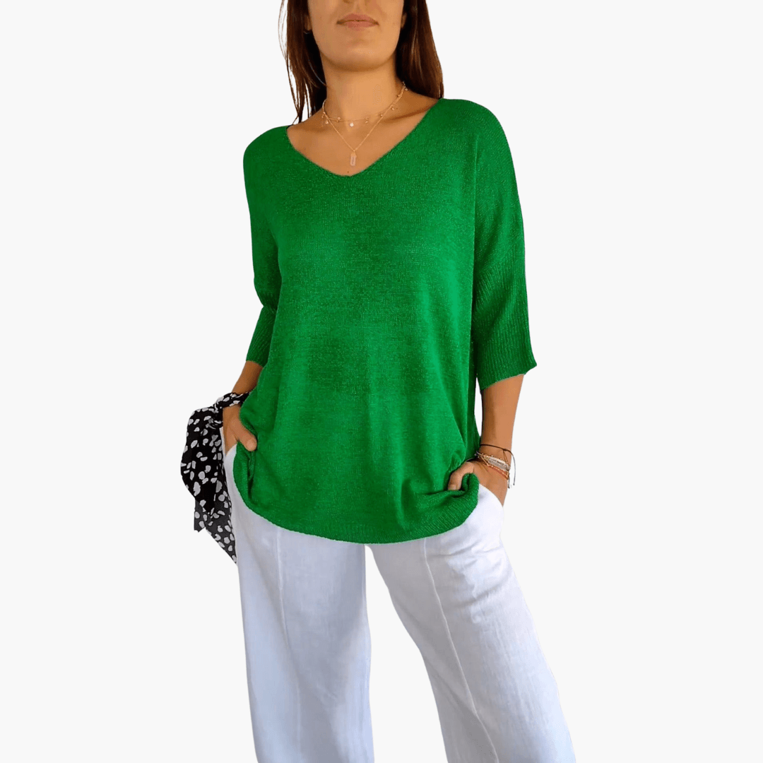 Looking for a top that enhances your summer wardrobe? This loose V-neck top combines everything you desire – it feels soft against the skin, creates a chic silhouette, and offers unmatched comfort for any occasion. Perfect for relaxed days in the sun or as a comfortable layering piece for cooler evenings.